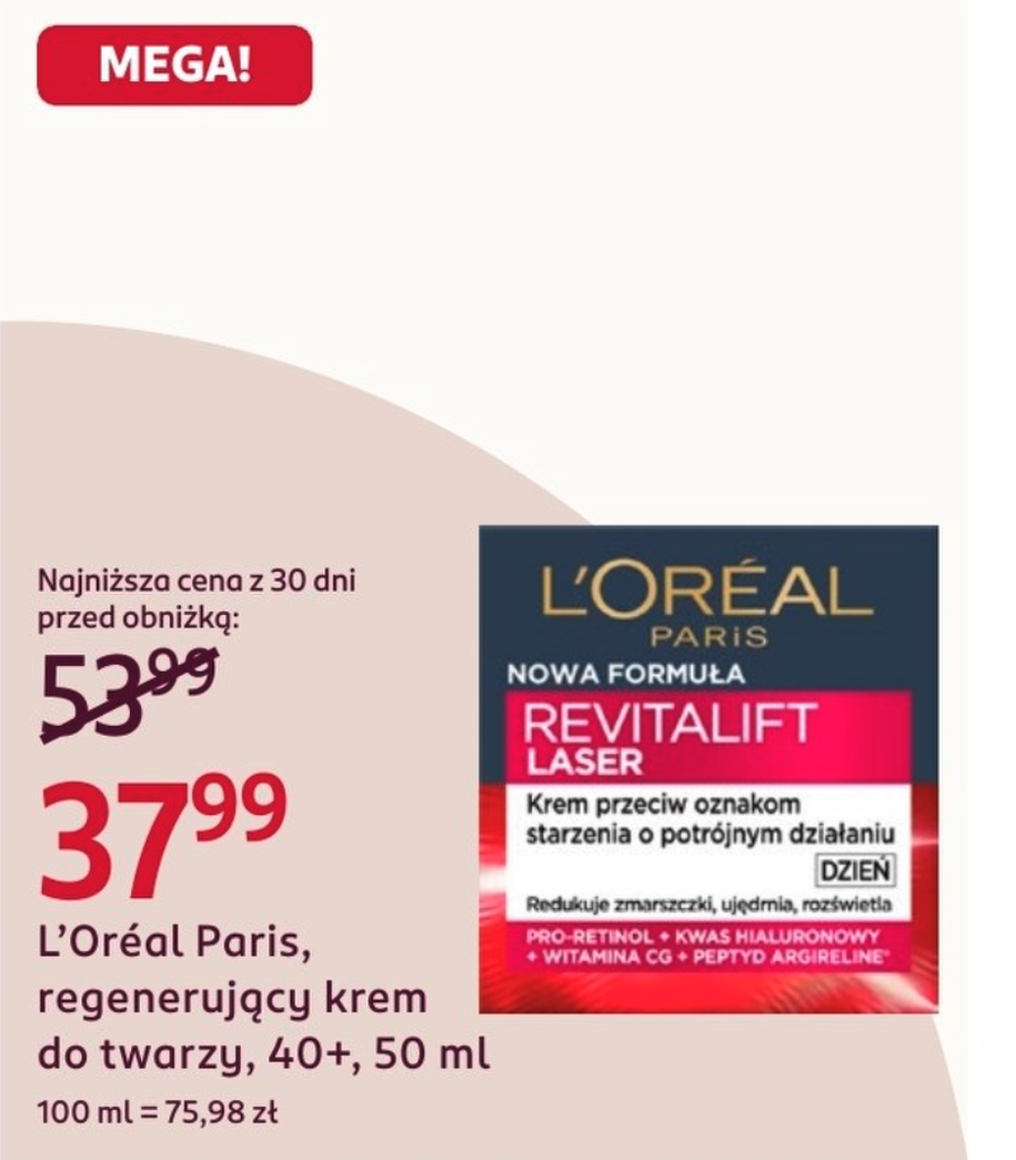 L'Oréal Revitalift Laser 40+ w Rossmannie za 37,99 zł – czy to dobra okazja?