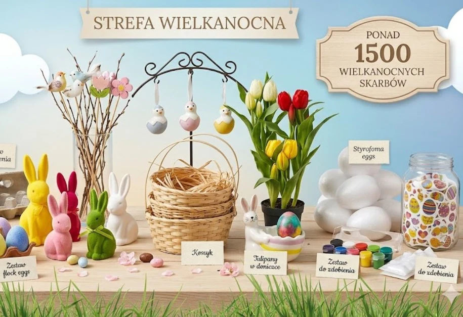Gazetka Auchan na 19–25 marca 2026 mnie zaskoczyła. Strefa Wielkanoc to ponad 1500 produktów z rabatami do 40%Kwiaty sztuczne od 6,49 złobrusy wielkanocne poniżej 17 złotych, koszyki filcowe za 7 zł. Szczegóły w gazetce Auchan na Wielkanoc.