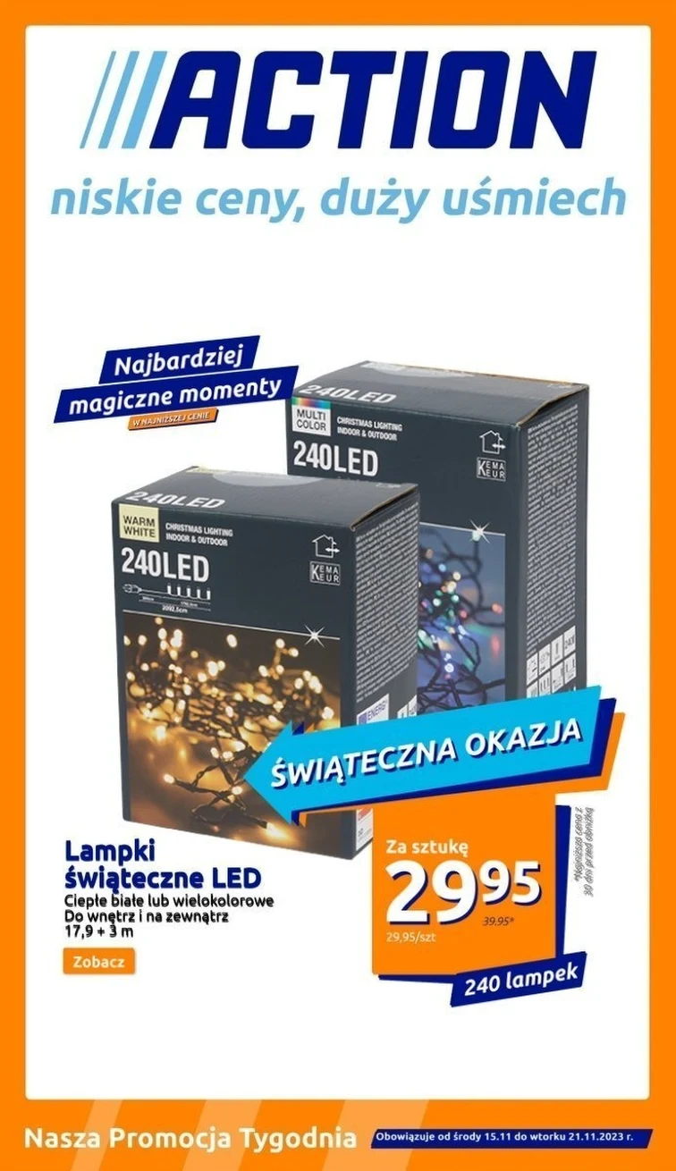 Sprawdź jakie promocyjne produkty kupisz w sklepie Action! Skorzystaj z rabatów od 2023-11-15 do 2023-11-21 na produkty: