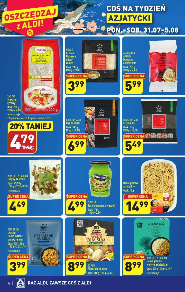 Wiesz, jaka jest oferta w Aldi? Obejrzyj gazetkę promocyjną od 2023-07-31 do 2023-08-05. Nie przegap rabatów na: