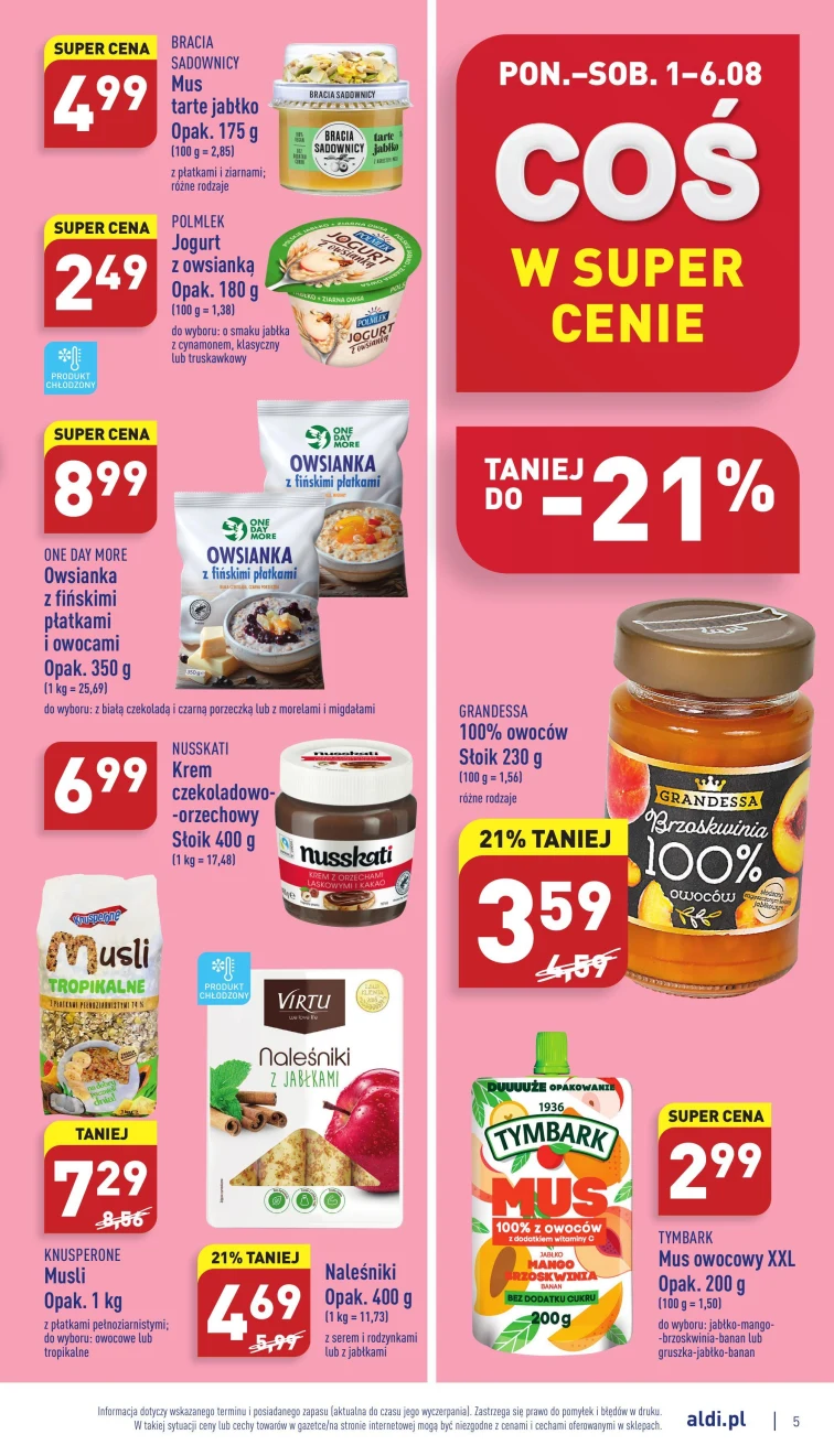 Zobacz najnowsze oferty w gazetce promocyjnej Aldi. Gazetka ważna od 2022-08-01 do 2022-08-06. Nie przegap najlepszych promocji:
