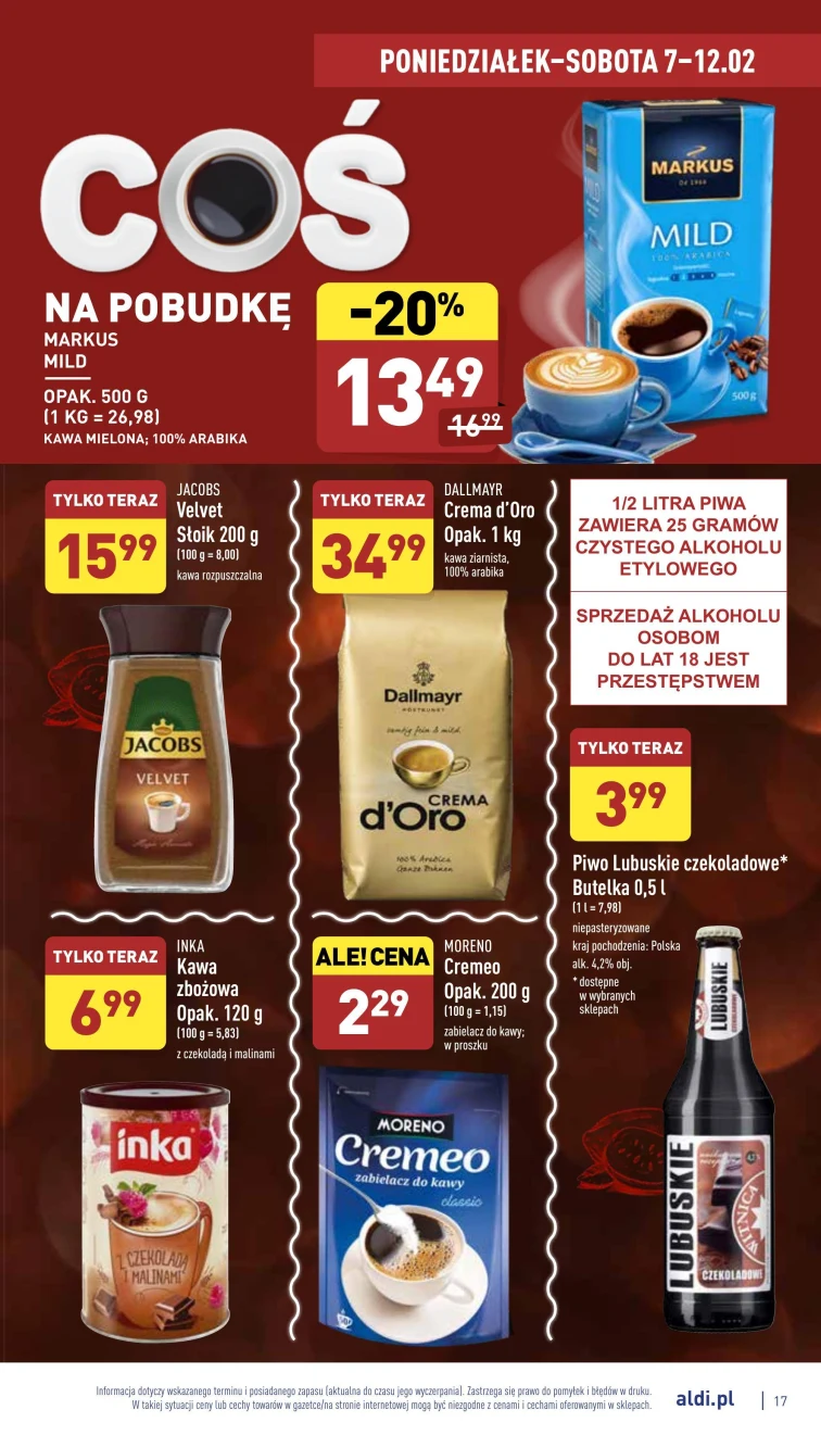 Sprawdź ofertę handlową Aldi, która obowiązuje od 2022-02-07 do 2022-02-12. W gazetce promocyjnej znajdziesz promocje na: