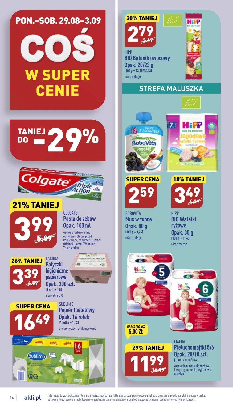 Przejrzyj gazetkę promocyjną Aldi. Atrakcyjne oferty dostaniesz od 2022-08-29 do 2022-09-03. Zaoszczędzisz na: