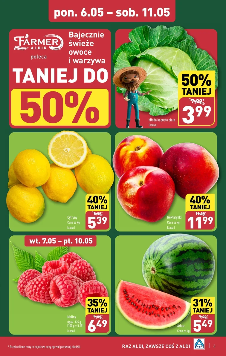 Gazetka promocyjna Aldi obowiązuje od 2024-05-06 i do 2024-05-11. Nie przegap najlepszych promocji w sklepach Aldi na:
