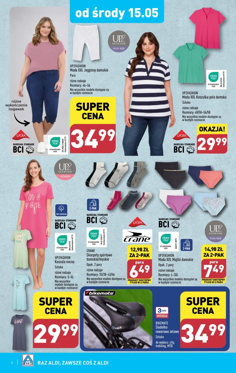 Skorzystaj z rabatów sieci Aldi. Gazetka promocyjna jest ważna od 2024-05-15 do 2024-05-18. Nie przegap tych atrakcyjnych produktów: