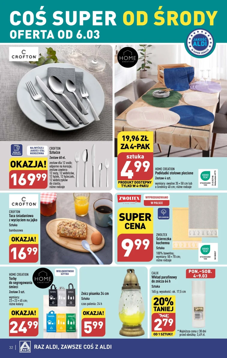 Nie przegap promocji w Aldi. Wspaniałe rabaty obejrzysz w gazetce promocyjnej od 2024-03-04 do 2024-03-09. Warto przyjrzeć się tym produktom: