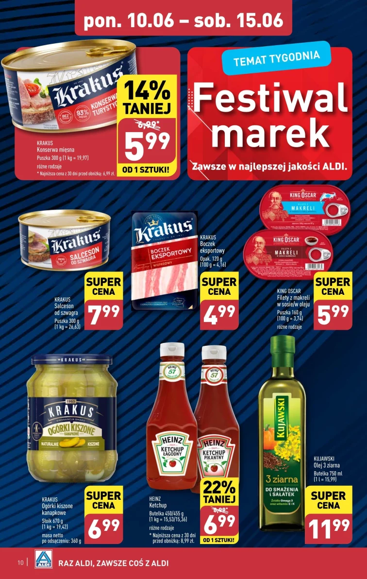Rabaty w gazetce promocyjnej Aldi. Promocja obowiązuje od 2024-06-10 do 2024-06-15. W atrakcyjnej cenie dostaniesz: