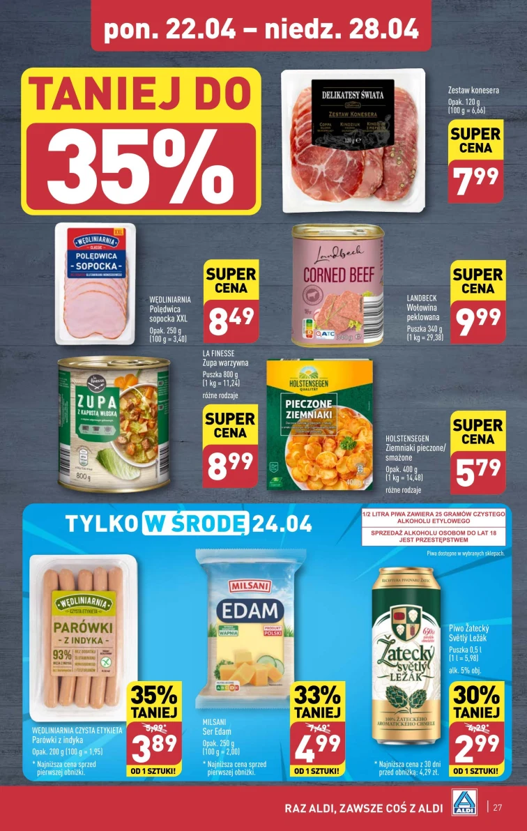 Nie przegap promocji w Aldi. Wspaniałe rabaty obejrzysz w gazetce promocyjnej od 2024-04-22 do 2024-04-28. Warto przyjrzeć się tym produktom: