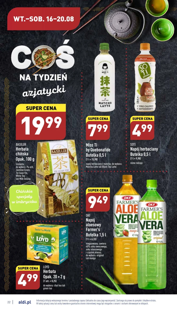 Nie przegap promocji w Aldi. Wspaniałe rabaty obejrzysz w gazetce promocyjnej od 2022-08-16 do 2022-08-20. Warto przyjrzeć się tym produktom:
