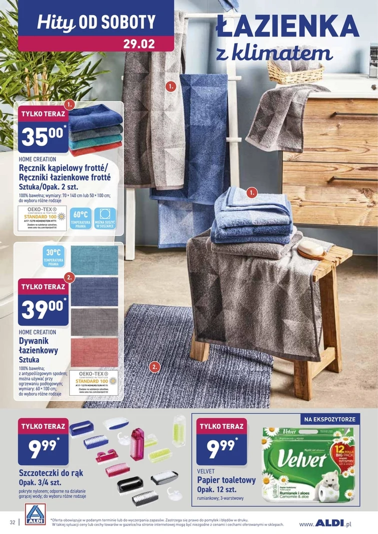 Kupując w Aldi oszczędzasz! Zobacz aktualną ofertę w gazetce promocyjnej od 2020-02-24 do 2020-02-29. W niskich cenach kupisz: