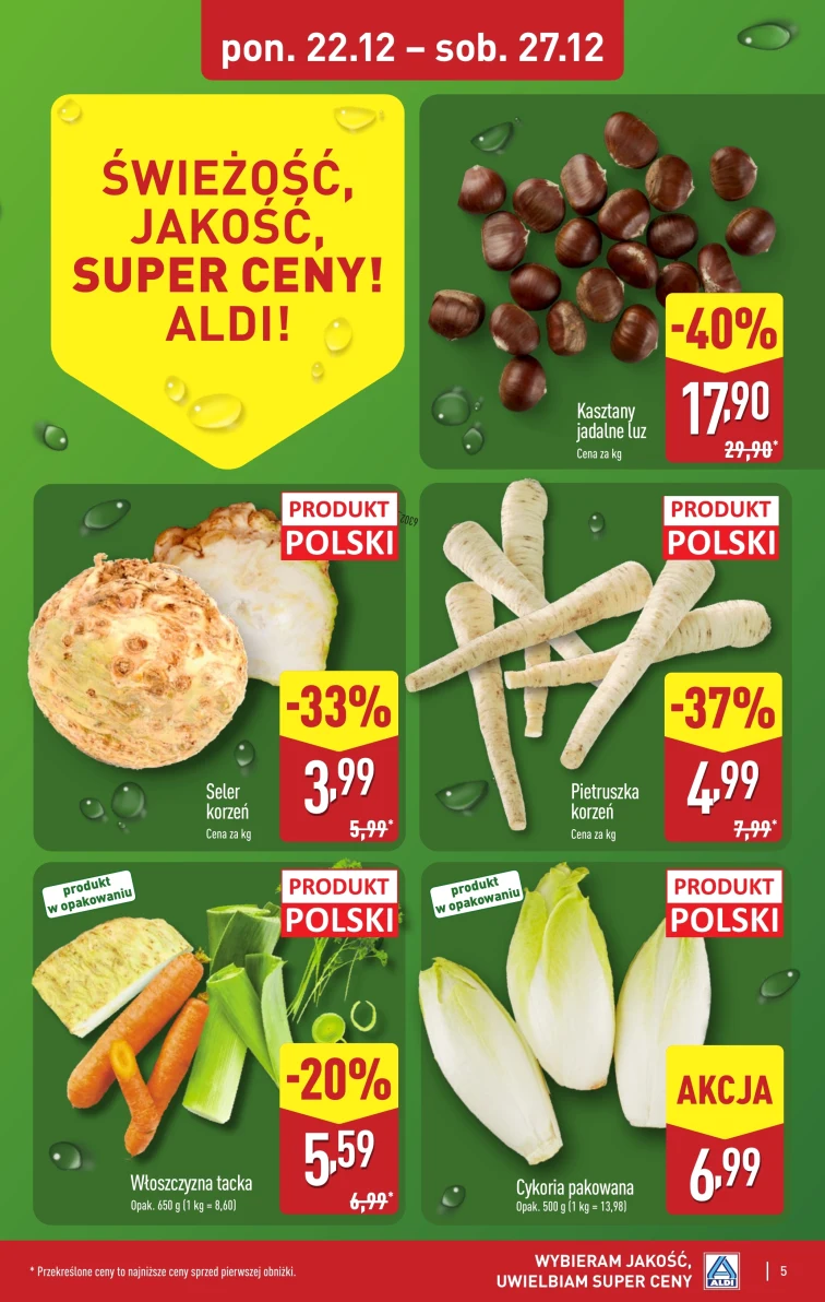 Sprawdź ofertę handlową Aldi, która obowiązuje od 2025-12-22 do 2025-12-27. W gazetce promocyjnej znajdziesz promocje na: