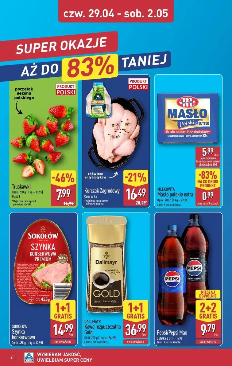 W gazetce Aldi obowiązują promocje od 2026-04-30 do 2026-05-02 na taki produkty: