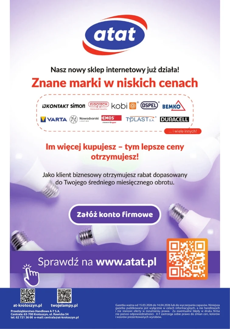 Niezwykłe promocje w gazetce promocyjnej At. Oferta ważna od 2026-03-15 do 2026-04-14. Znajdziesz rabaty na produkty takie jak: