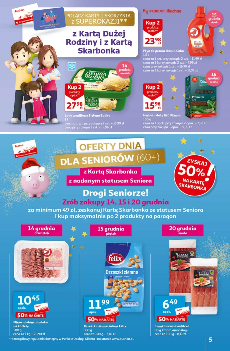Sprawdź rabaty Auchan Hipermarket w gazetce promocyjnej. Oferta obowiązuje od 2023-12-14 do 2023-12-23. Promocja obejmuje: