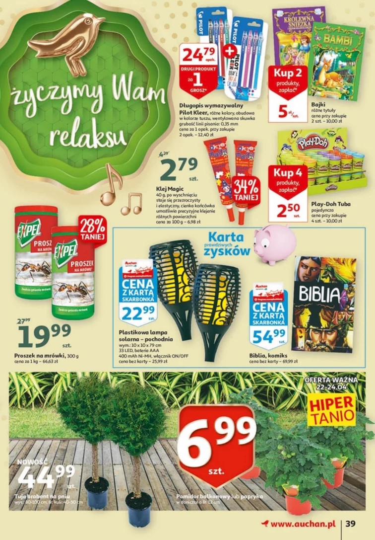 Wiesz jakie rabaty są teraz w Auchan Hipermarket? Sprawdź gazetkę promocyjną od 2021-04-22 do 2021-04-28. Nie przegap promocji na: