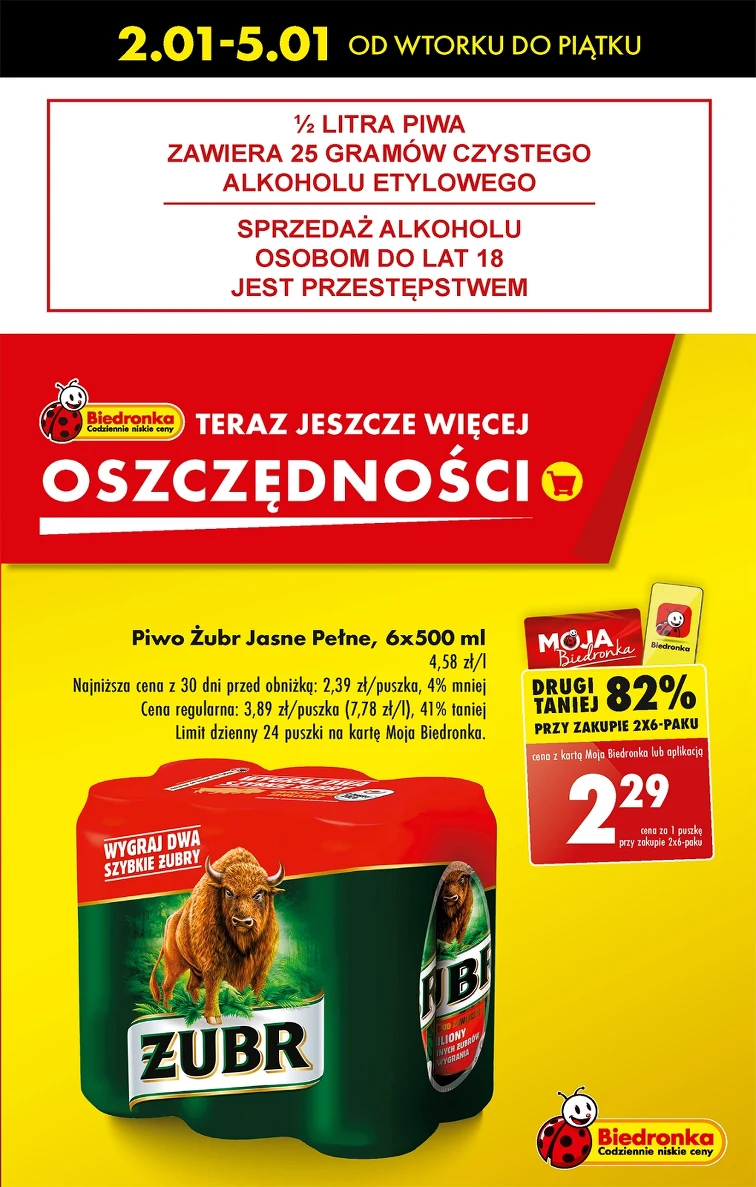 Skorzystaj z promocji w Biedronka od 2024-01-02 do 2024-01-05. W atrakcyjnych cenach znajdziesz takie produkty, jak: