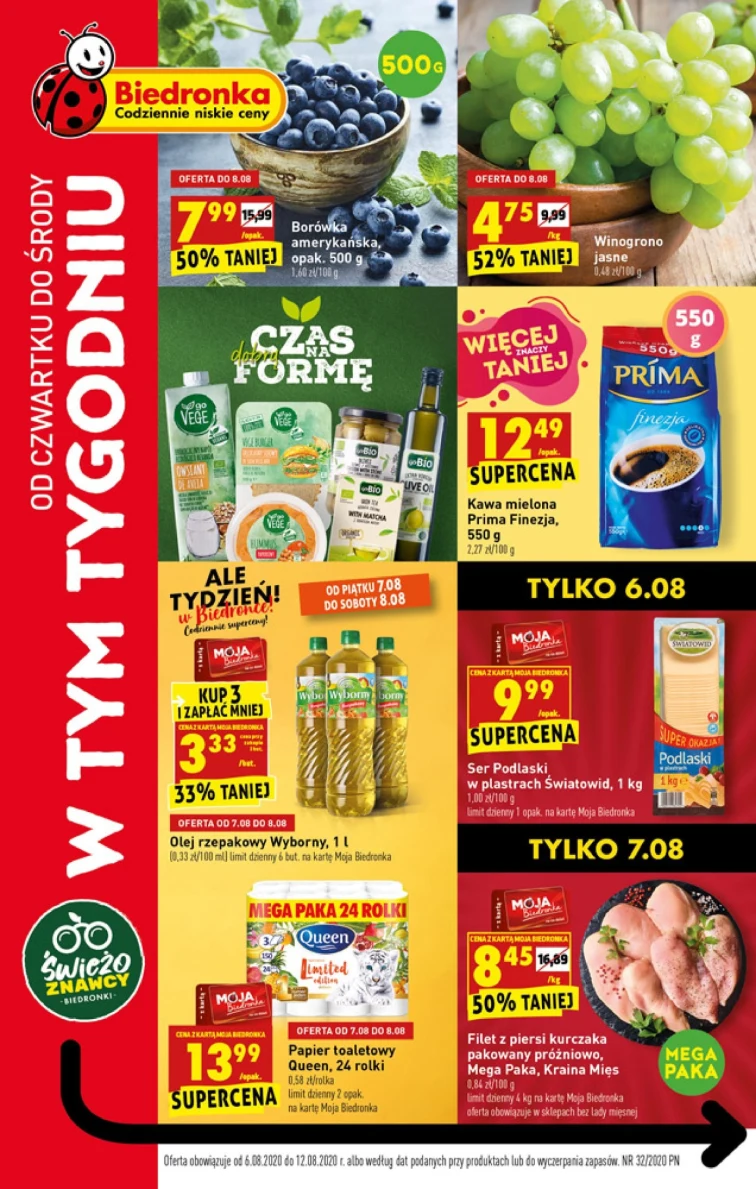Rabaty w gazetce promocyjnej Biedronka. Promocja obowiązuje od 2020-08-06 do 2020-08-12. W atrakcyjnej cenie dostaniesz: