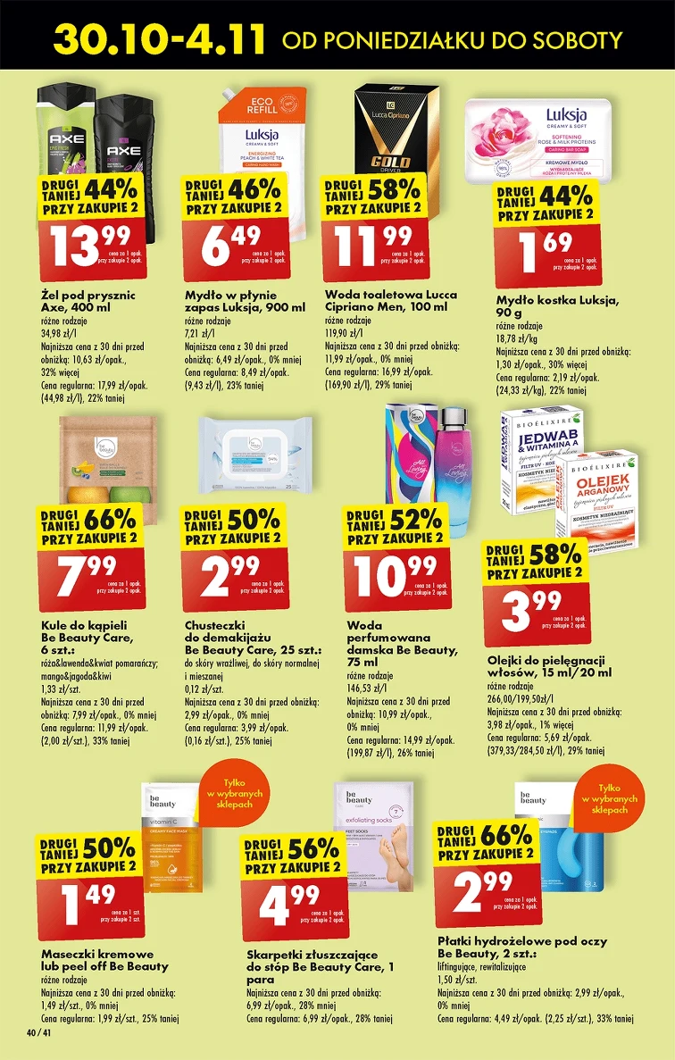 Skorzystaj z promocji w Biedronka od 2023-10-30 do 2023-11-04. W atrakcyjnych cenach znajdziesz takie produkty, jak: