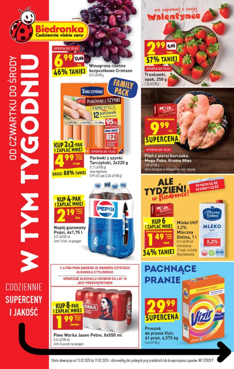 Skorzystaj z promocji w Biedronka od 2020-02-13 do 2020-02-15. W atrakcyjnych cenach znajdziesz takie produkty, jak: