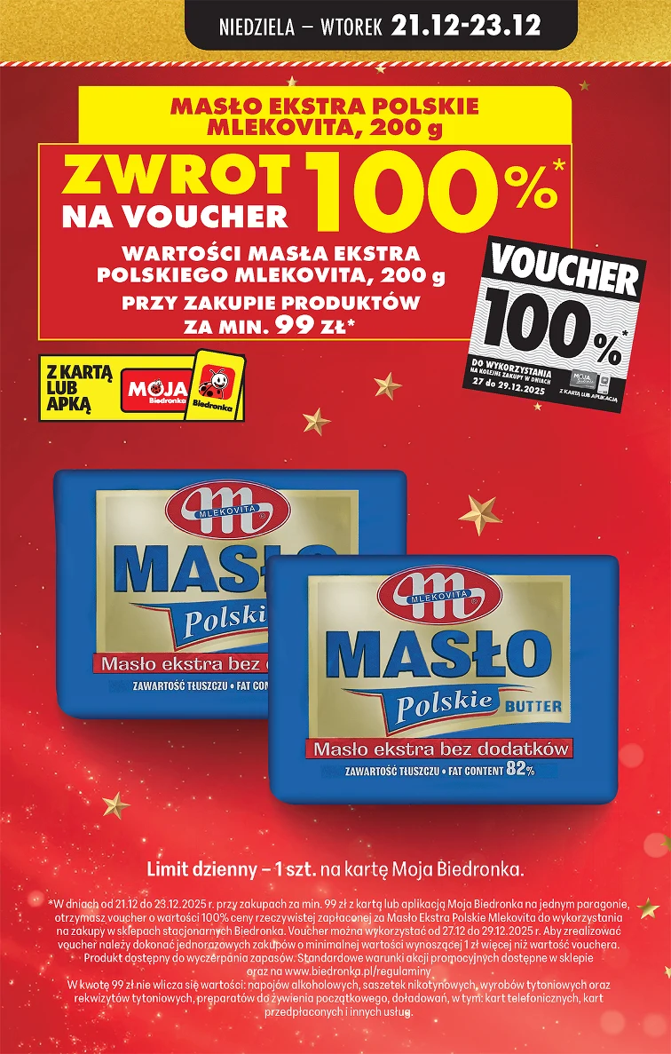 Skorzystaj z promocji w Biedronka od 2025-12-21 do 2025-12-27. W atrakcyjnych cenach znajdziesz takie produkty, jak: