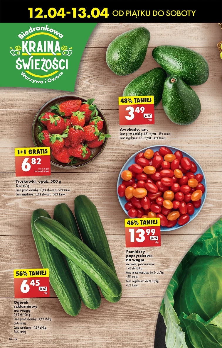 Zobacz najnowsze oferty w gazetce promocyjnej Biedronka. Gazetka ważna od 2024-04-12 do 2024-04-13. Nie przegap najlepszych promocji:
