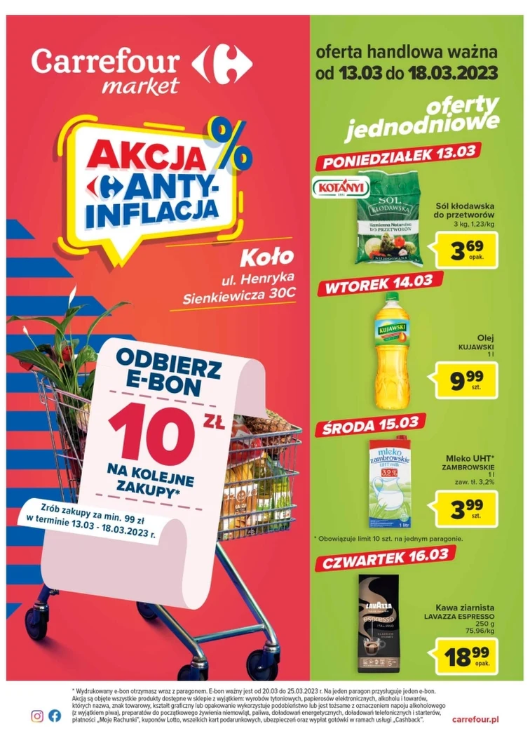 Promocje w sklepach Carrefour obowiązują od 2023-03-13 do 2023-03-18. Sprawdź gazetkę promocyjną Carrefour i upoluj najlepsze promocje na: