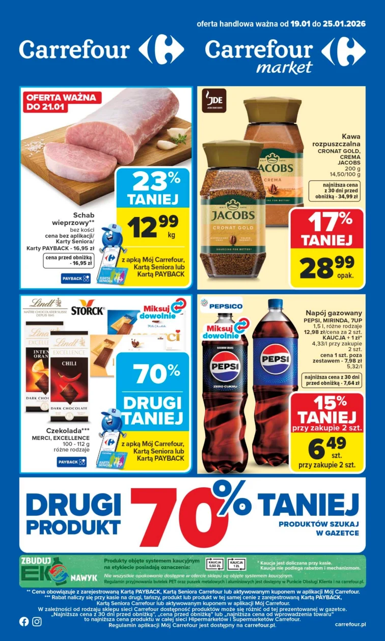 Niezwykłe promocje w gazetce promocyjnej Carrefour. Oferta ważna od 2026-01-19 do 2026-01-25. Znajdziesz rabaty na produkty takie jak: