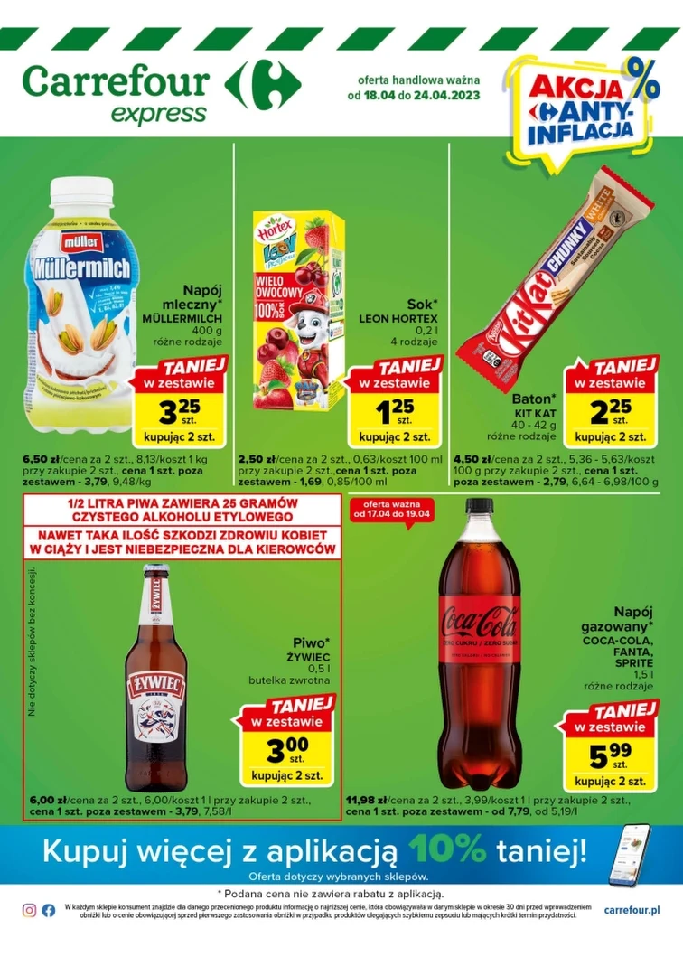 Wiesz, jaka jest oferta w Carrefour Express? Obejrzyj gazetkę promocyjną od 2023-04-18 do 2023-04-24. Nie przegap rabatów na: