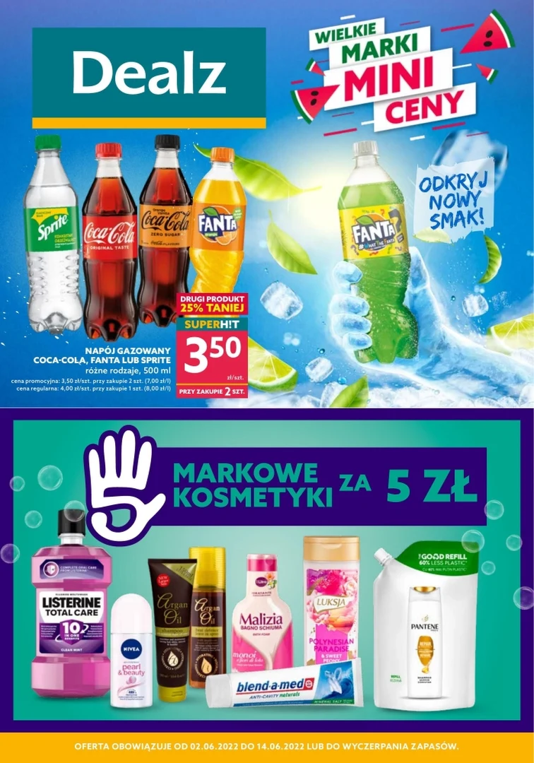 Sprawdź gazetkę Dealz! Promocje w sklepach sieci są ważne od 2022-06-02 do 2022-06-14. W atrakcyjnej cenie dostaniesz takie produkty: