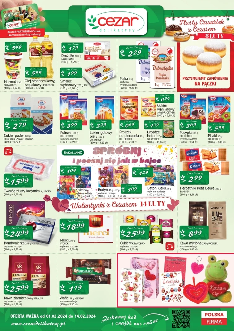 Rabaty w gazetce promocyjnej Delikatesy CEZAR. Promocja obowiązuje od 2024-02-01 do 2024-02-14. W atrakcyjnej cenie dostaniesz: