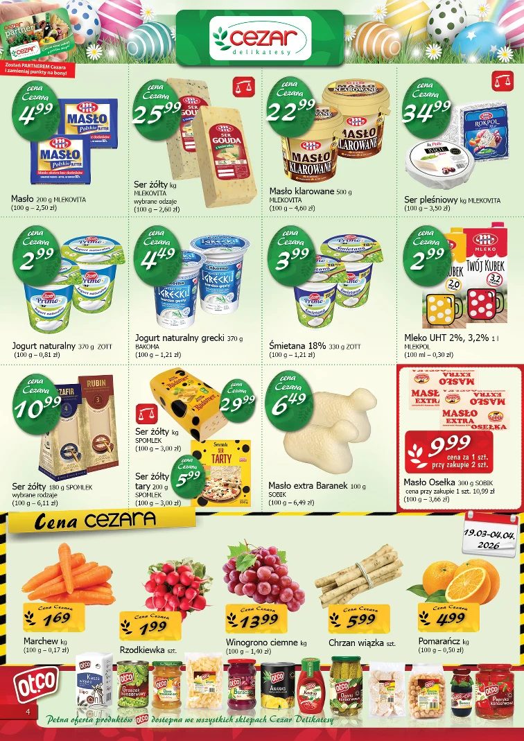 W gazetce Delikatesy CEZAR obowiązują promocje od 2026-03-19 do 2026-04-04 na taki produkty: