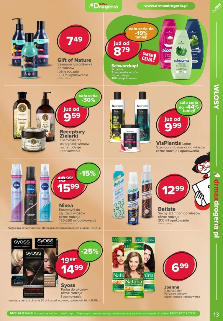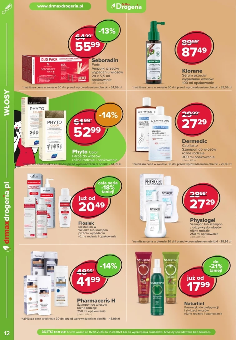 Niezwykłe promocje w gazetce promocyjnej Dr.Max Drogeria. Oferta ważna od 2024-01-02 do 2024-01-31. Znajdziesz rabaty na produkty takie jak: