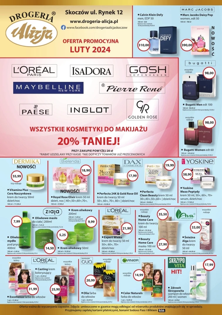 Skorzystaj z promocji w Drogeria Alicja od 2024-02-01 do 2024-02-29. W atrakcyjnych cenach znajdziesz takie produkty, jak: