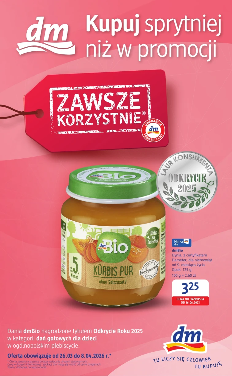 Skorzystaj z promocji w Drogerie dm od 2026-03-26 do 2026-04-08. W atrakcyjnych cenach znajdziesz takie produkty, jak: