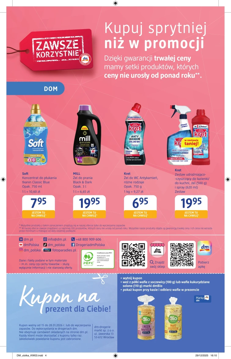 Skorzystaj z promocji w Drogerie dm od 2026-01-15 do 2026-01-28. W atrakcyjnych cenach znajdziesz takie produkty, jak: