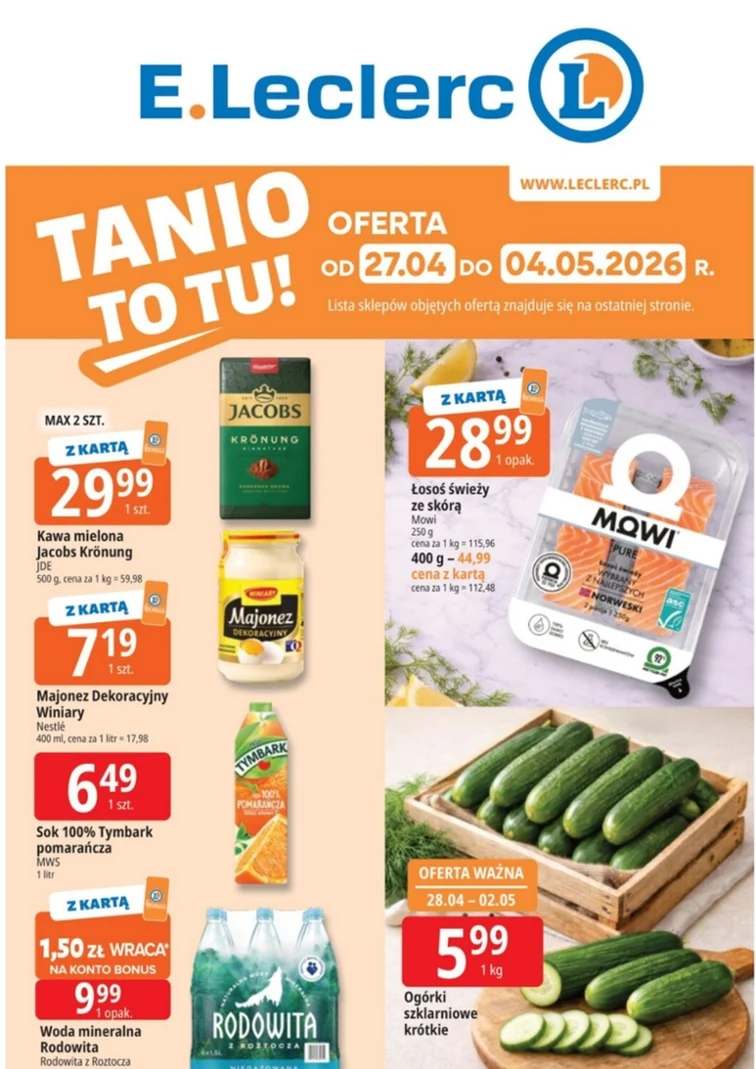 E.Leclerc ma super okazje! Zobacz gazetkę promocyjną od 2026-04-27 do 2026-05-04. Upoluj rabaty na: