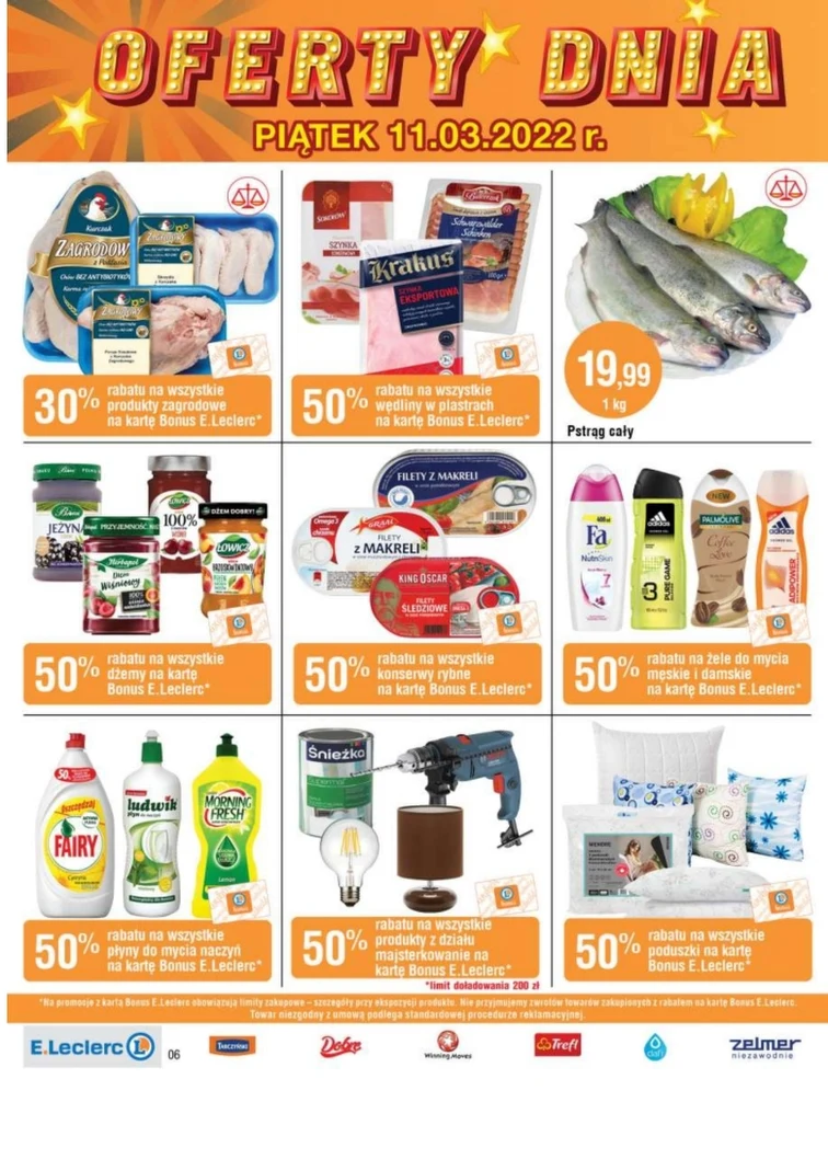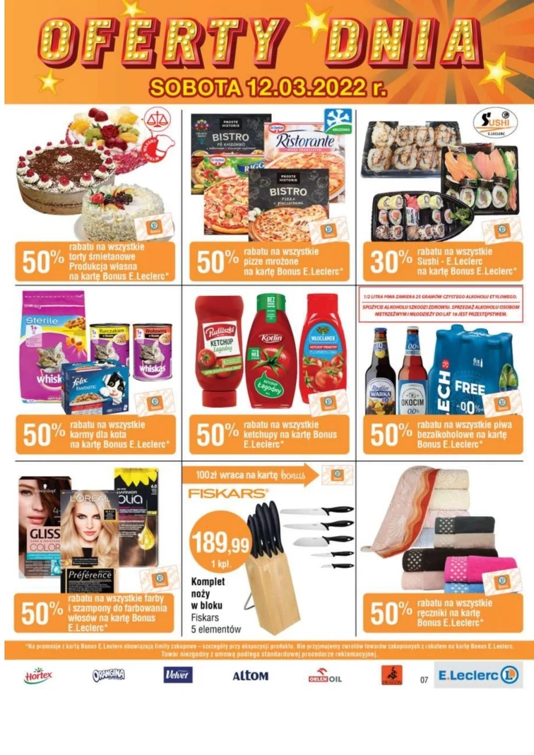 Zobacz promocję w E.Leclerc. W gazetce promocyjnej od 2022-03-07 do 2022-03-19 są świetne rabaty! Sprawdź jak tanio dostaniesz: