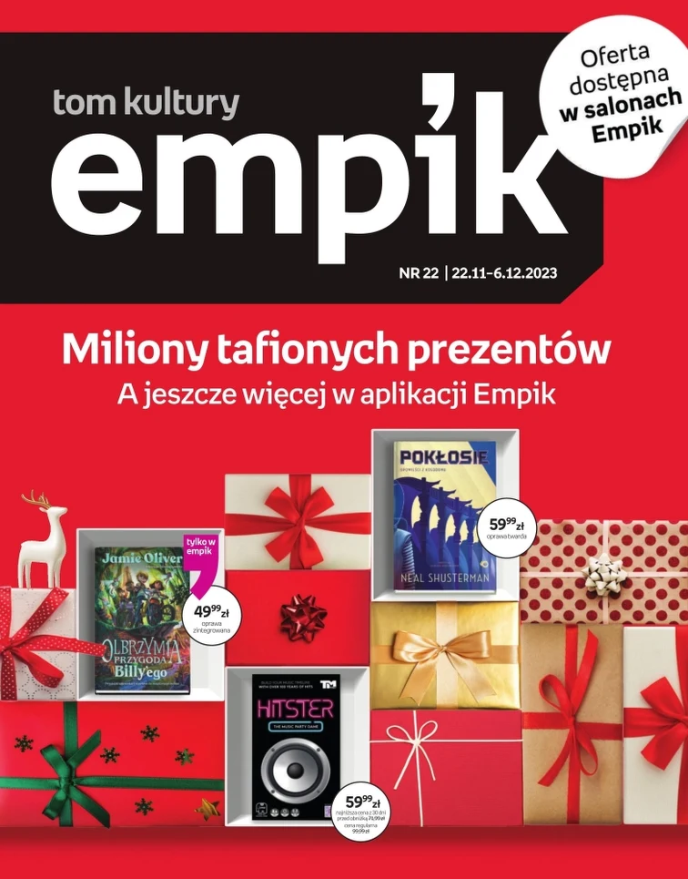 Sprawdź ofertę handlową EMPiK, która obowiązuje od 2023-11-22 do 2023-12-06. W gazetce promocyjnej znajdziesz promocje na: