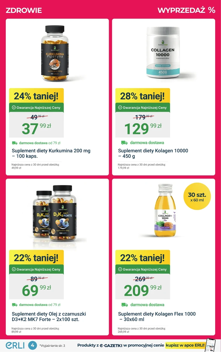 Zrób zakupy w ERLI taniej! Sprawdź promocji w gazetce na takie produkty: