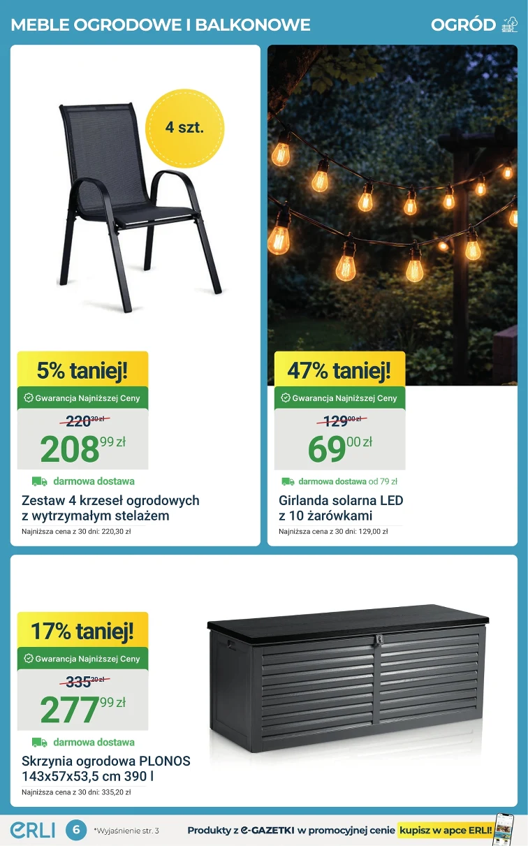 Oszczędzaj w sklepach ERLI. Zobacz gazetkę promocyjną od 2026-04-06 do 2026-04-12. Tanio dostaniesz: