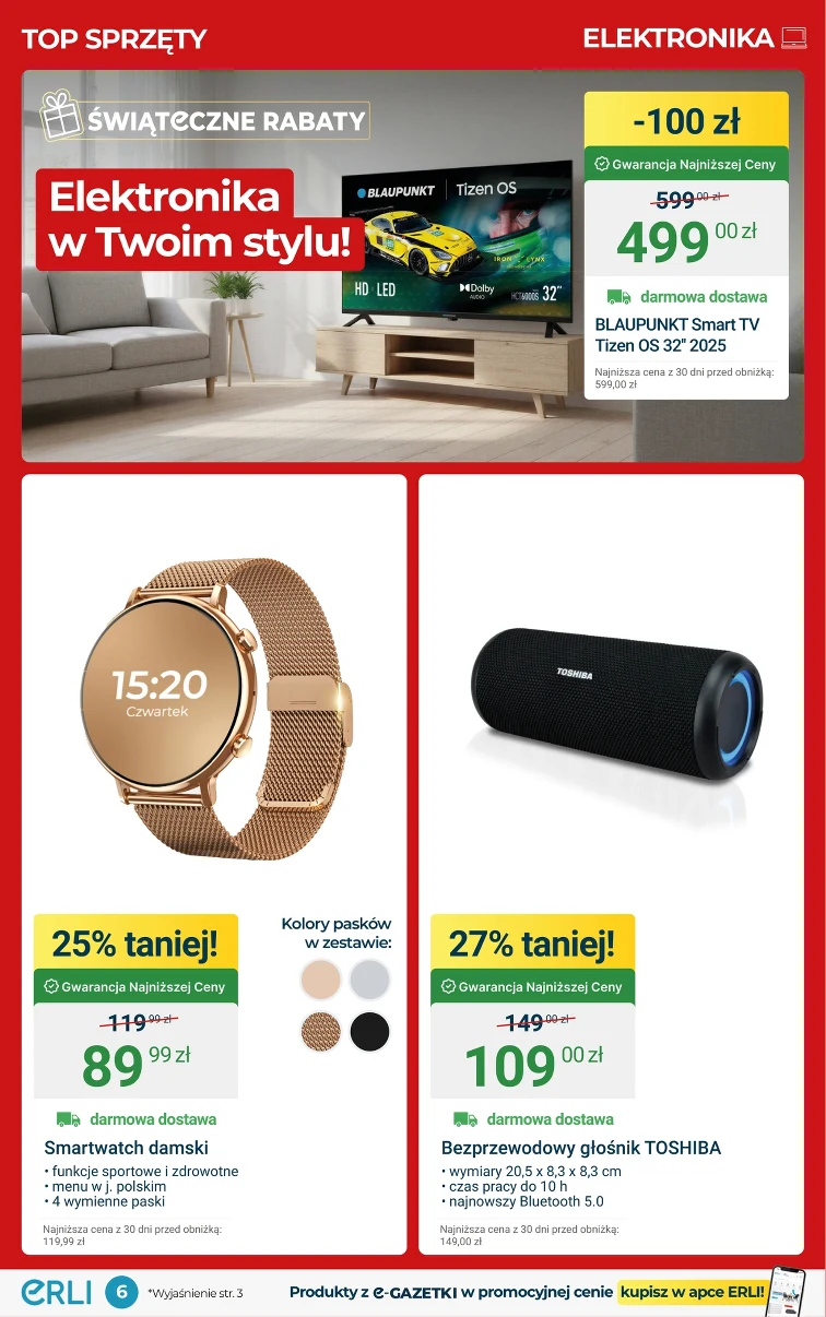 Świeże promocje w sieci ERLI. Zobacz gazetkę promocyjną od 2025-12-22 do 2026-01-04. Zaoszczędź na: