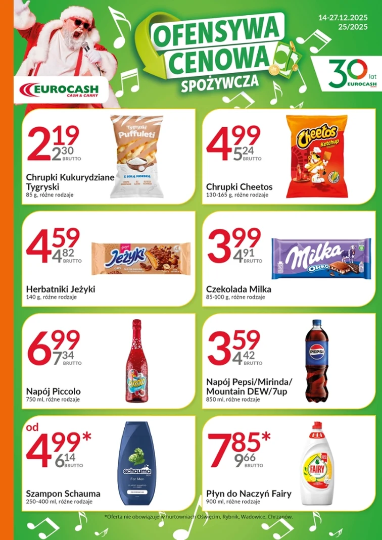 Atrakcyjne ceny w Eurocash Cash&Carry. Wszystkie rabaty obejrzysz w gazetce promocyjnej od 2025-12-14 do 2025-12-27. Warto sprawdzić te tanie produkty: