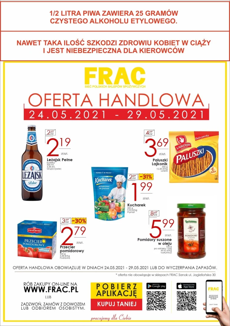 Gazetka promocyjna FRAC obowiązuje od 2021-05-24 i do 2021-05-29. Nie przegap najlepszych promocji w sklepach FRAC na:
