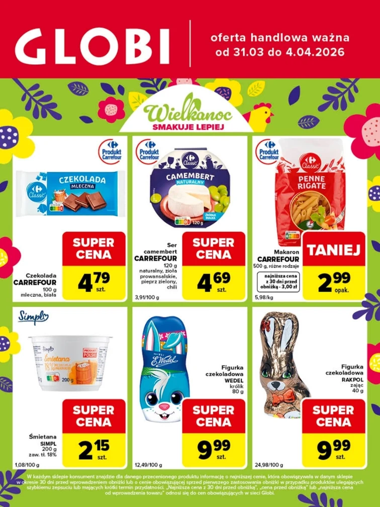 Nowa gazetka Globi obowiązująca od 2026-03-31 do 2026-04-04 prezentuje promocje na takie produkty: