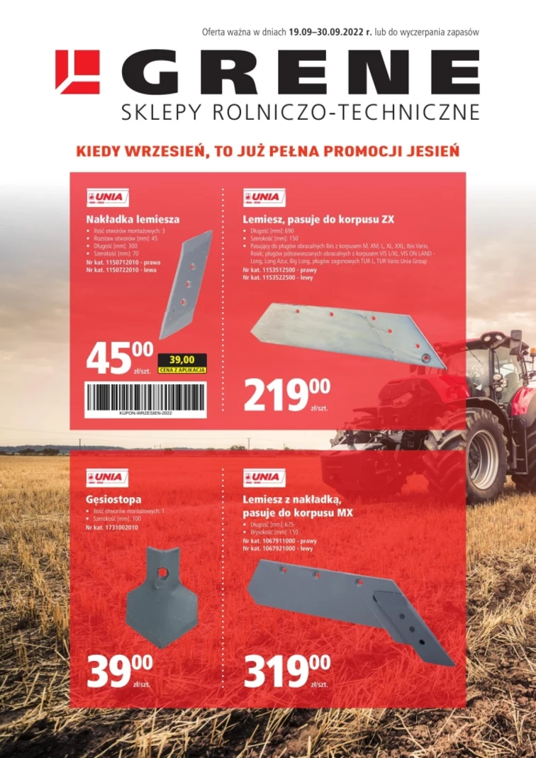 Sprawdź rabaty Grene w gazetce promocyjnej. Oferta obowiązuje od 2022-09-19 do 2022-09-30. Promocja obejmuje: