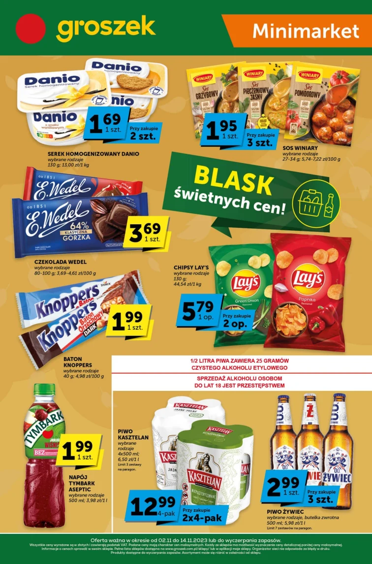 Atrakcyjne ceny w Groszek. Wszystkie rabaty obejrzysz w gazetce promocyjnej od 2023-11-02 do 2023-11-14. Warto sprawdzić te tanie produkty: