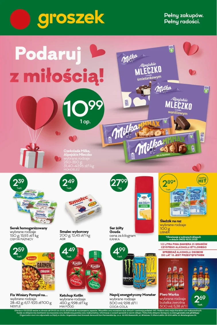 Przejrzyj gazetkę promocyjną Groszek. Atrakcyjne oferty dostaniesz od 2023-02-09 do 2023-02-21. Zaoszczędzisz na: