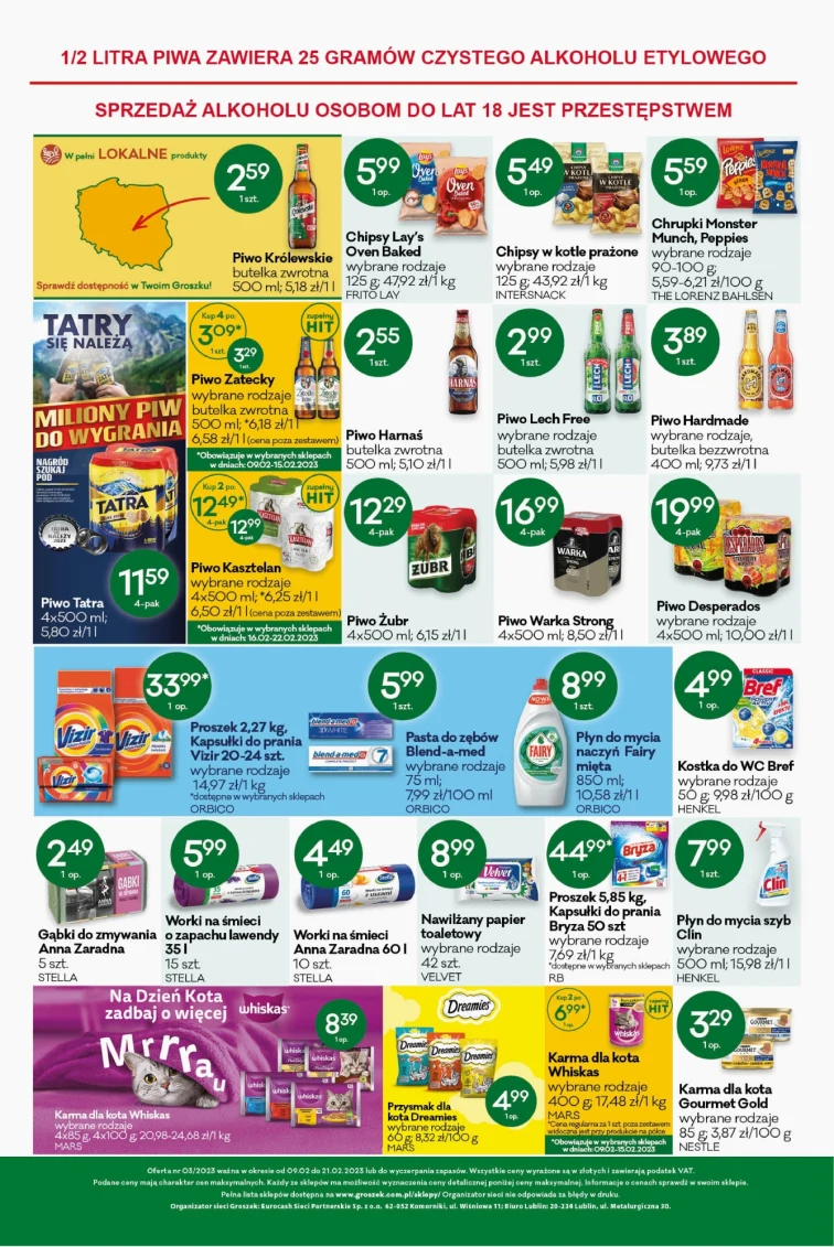 Przejrzyj gazetkę promocyjną Groszek. Atrakcyjne oferty dostaniesz od 2023-02-09 do 2023-02-21. Zaoszczędzisz na: