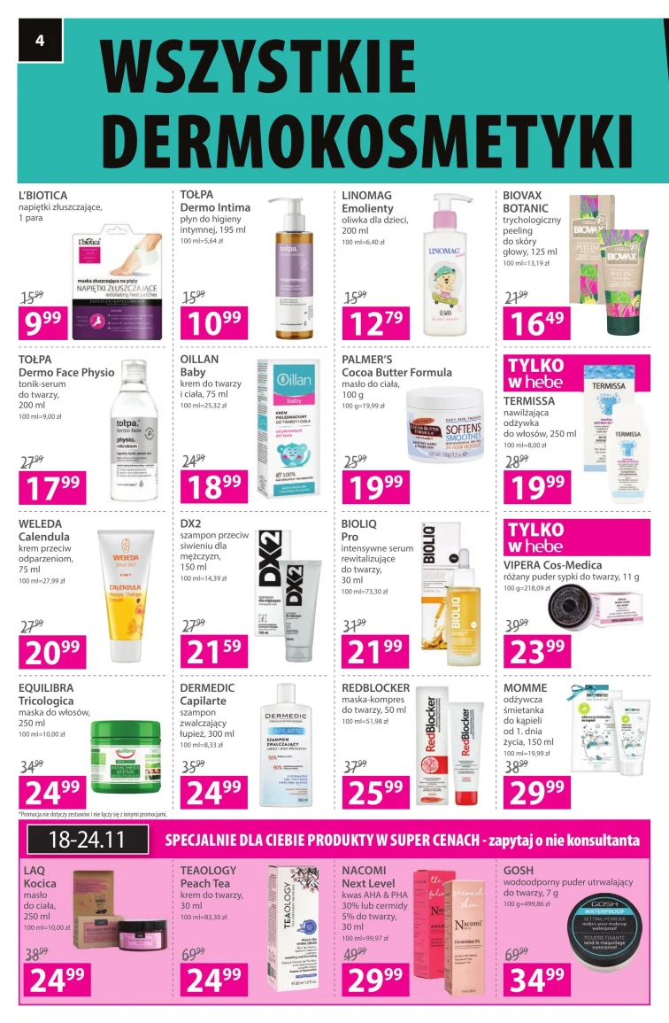 Zobacz gazetkę Hebe, promocje obowiązują od 2021-11-04 do 2021-11-21. W dobrej cenie kupisz: