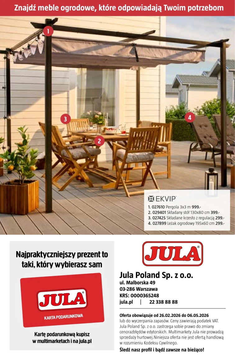 Nowa gazetka Jula obowiązująca od 2026-02-26 do 2026-05-06 prezentuje promocje na takie produkty: